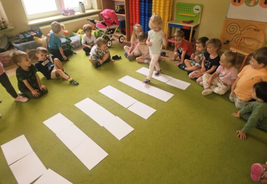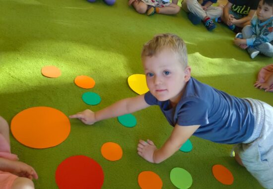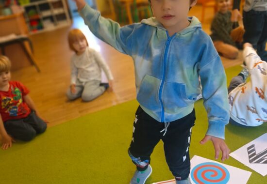– Doskonaliliśmy naukę orientacji w przestrzeni (określanie kierunków, położenia przedmiotów-koła)