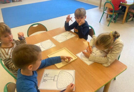 W tym czasie poznaliśmy cyfry do 4 oraz nowe litery, które utrwalaliśmy poprzez zabawy, gry dydaktyczne i wspólne działania. Wykonaliśmy także wiele ciekawych kart pracy i  prac plastycznych związanych z tematem drewna.