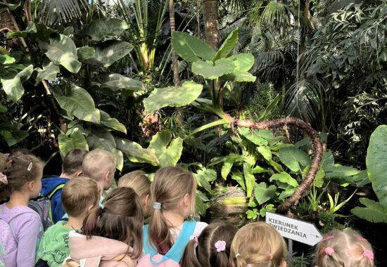Wybraliśmy się na wycieczkę do Palmiarni, gdzie mogliśmy podziwiać egzotyczne rośliny, poznać ich różnorodne kształty, kolory i zapachy oraz dowiedzieć się, w jakich warunkach rosną. To była niezwykła podróż do świata tropikalnej przyrody!