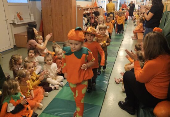 – świętowaliśmy Dzień Dyni podczas którego odbył się m.in. Dyniowy Pokaz Mody. Wszystkie dzieci w dyniowych strojach fantastycznie prezentowały się na wybiegu.