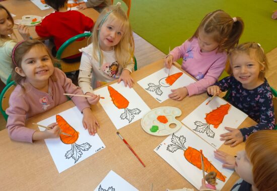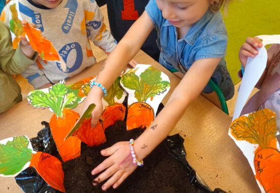 -określaliśmy położenie warzyw- dowiedzieliśmy się co rośnie nad i pod ziemią -wykonaliśmy pracę przestrzenią pt „nad i pod ziemią-” „Marchewka”,