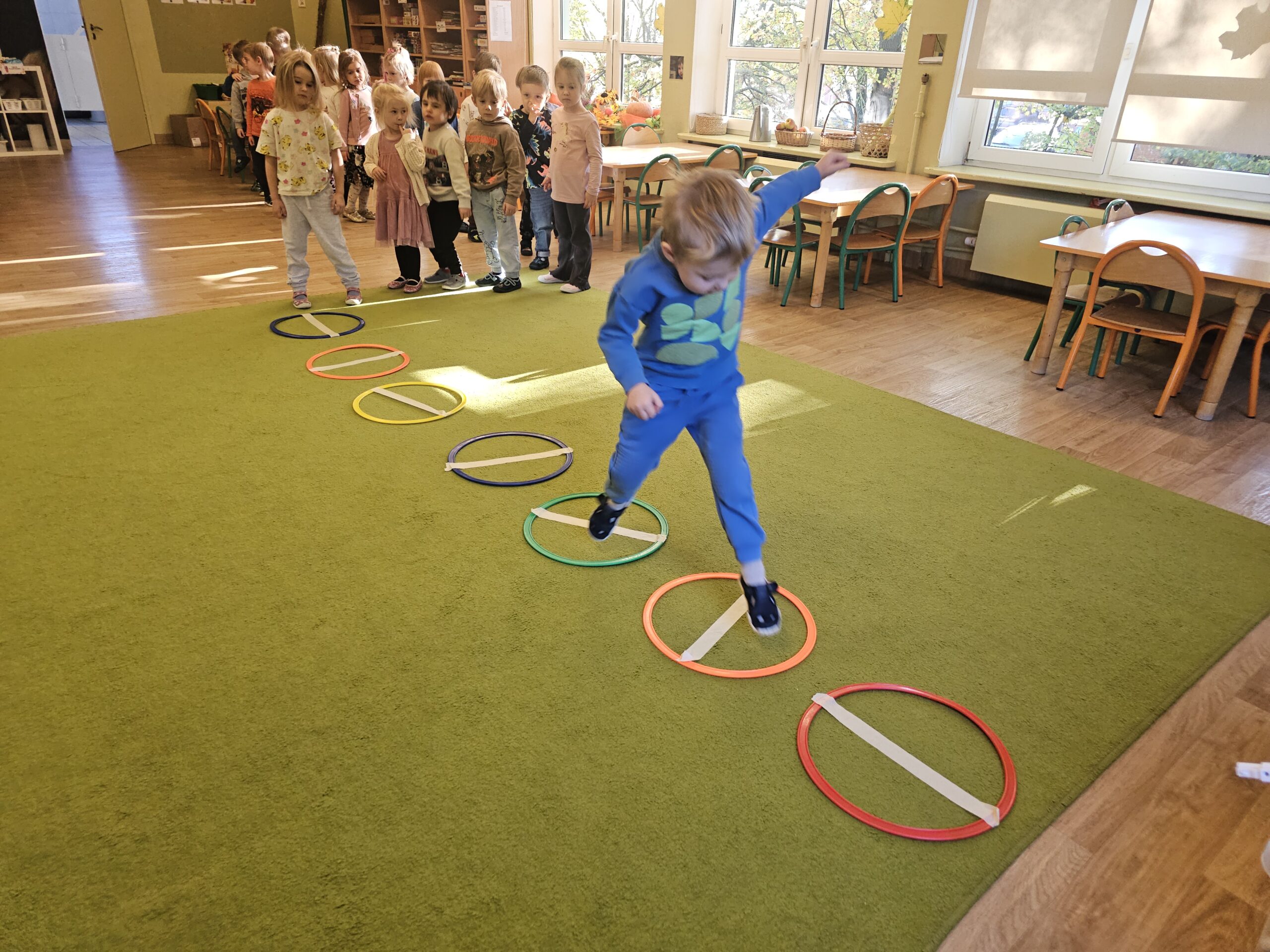 – uczyliśmy się hymnu przedszkola, a także piosenki pt. „Pani Jesień” z pokazywaniem,