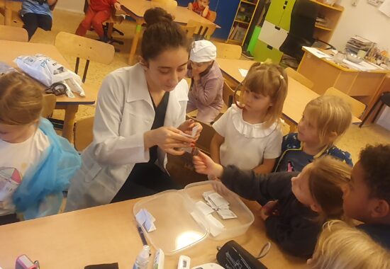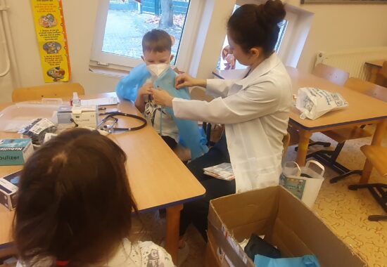 Nasz gość zapoznał nas z zawodem lekarza ,który jest bardzo ważny a jego praca nie należy do łatwych.Dowiedziliśmy się z jakich organów składa się ciało człowieka od wewnątrz.Mogliśmy wcielić się w rolę lekarza i pacjenta ,wypisywać recepty i przymierzyć prawdziwy fartuch lekarski !Poznaliśmy niezbędnik lekarski czyli zestaw akcesoriów potrzebych lekarzom do pracy.