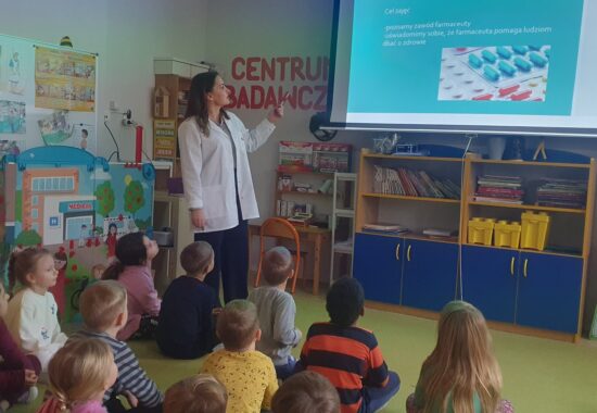 Mama Leona wyjśniła nam czym się zajmuje i gdzie pracuje farmaceuta.W naszej sali powstala apetka a my mogliśmy wcielić się w rolę klienta i farmaceuty.Kolejnym etapem było wykonanie magicznego leku swojej receptury , który na koniec mogliśmy zabrać do domu..W środę do naszej grupy zawitał kolejny ekspert – Trycholog ( mama Helenki ,,Biedroneczki”)