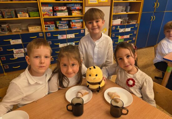 W piątek wzięliśmy udział w Apelu z okazji Dnia Niepodległości a nasza pszczoła Petronela została pasowana na ucznia .Petronela bardzo nie chciała zostać sama w przedszkolu więc wpadliśmy na pomysł żeby każde dziecko mogło zabrać ją na jeden z weekendów do siebie by pokazać jej swój dom i zwiedzić ciekawe miasta w Poznaniu.