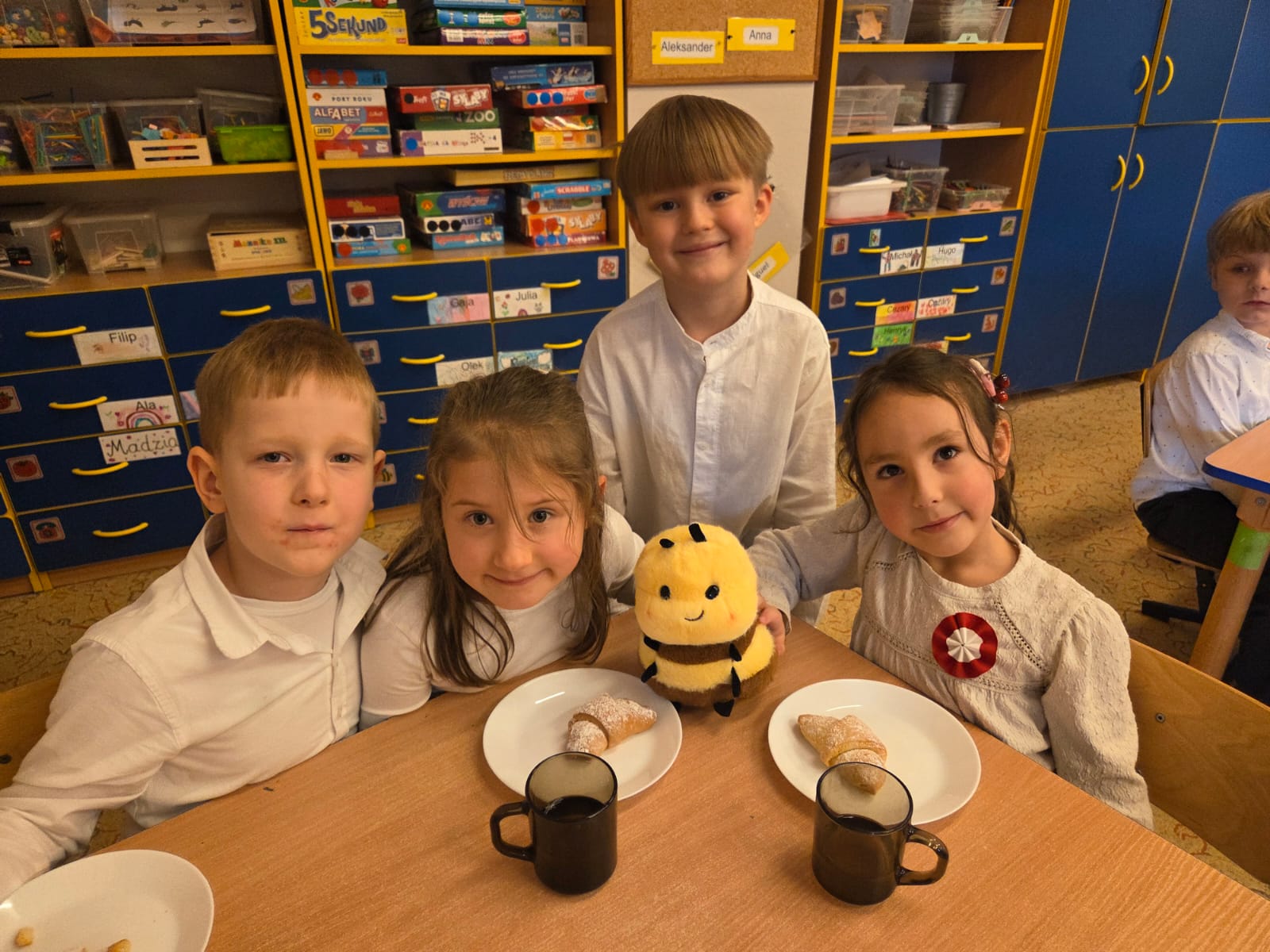 W piątek wzięliśmy udział w Apelu z okazji Dnia Niepodległości a nasza pszczoła Petronela została pasowana na ucznia .Petronela bardzo nie chciała zostać sama w przedszkolu więc wpadliśmy na pomysł żeby każde dziecko mogło zabrać ją na jeden z weekendów do siebie by pokazać jej swój dom i zwiedzić ciekawe miasta w Poznaniu.
