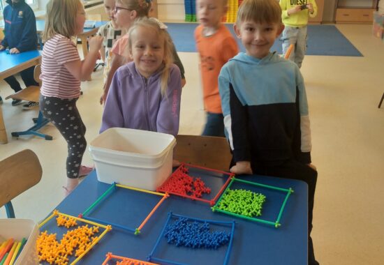 Doskonaliły umiejętność przeliczania elementów w zakresie odpowiednim do wieku oraz porównywania liczebności zbiorów. Poznały także liczebniki porządkowe, które ćwiczyły w zabawach.