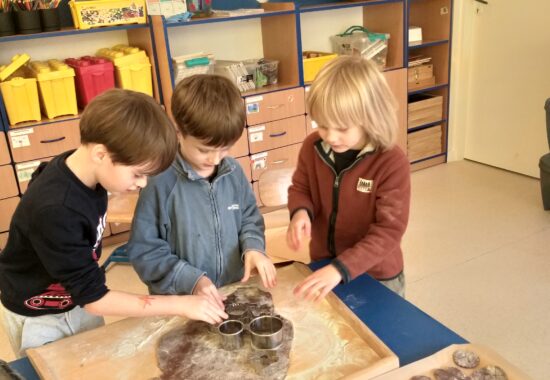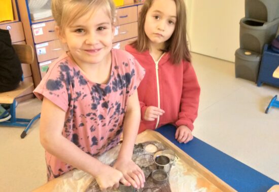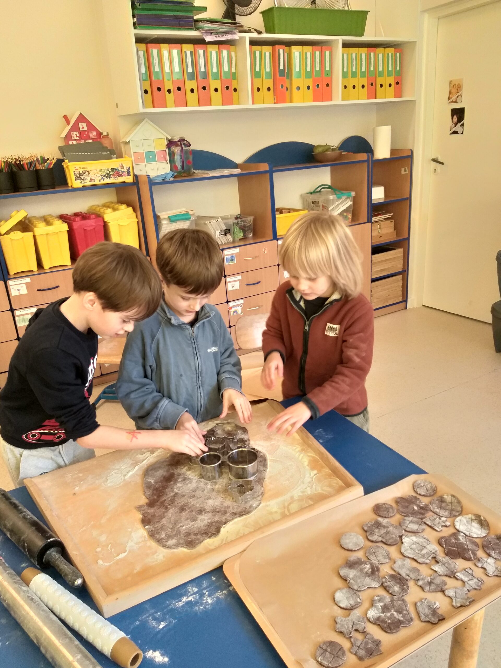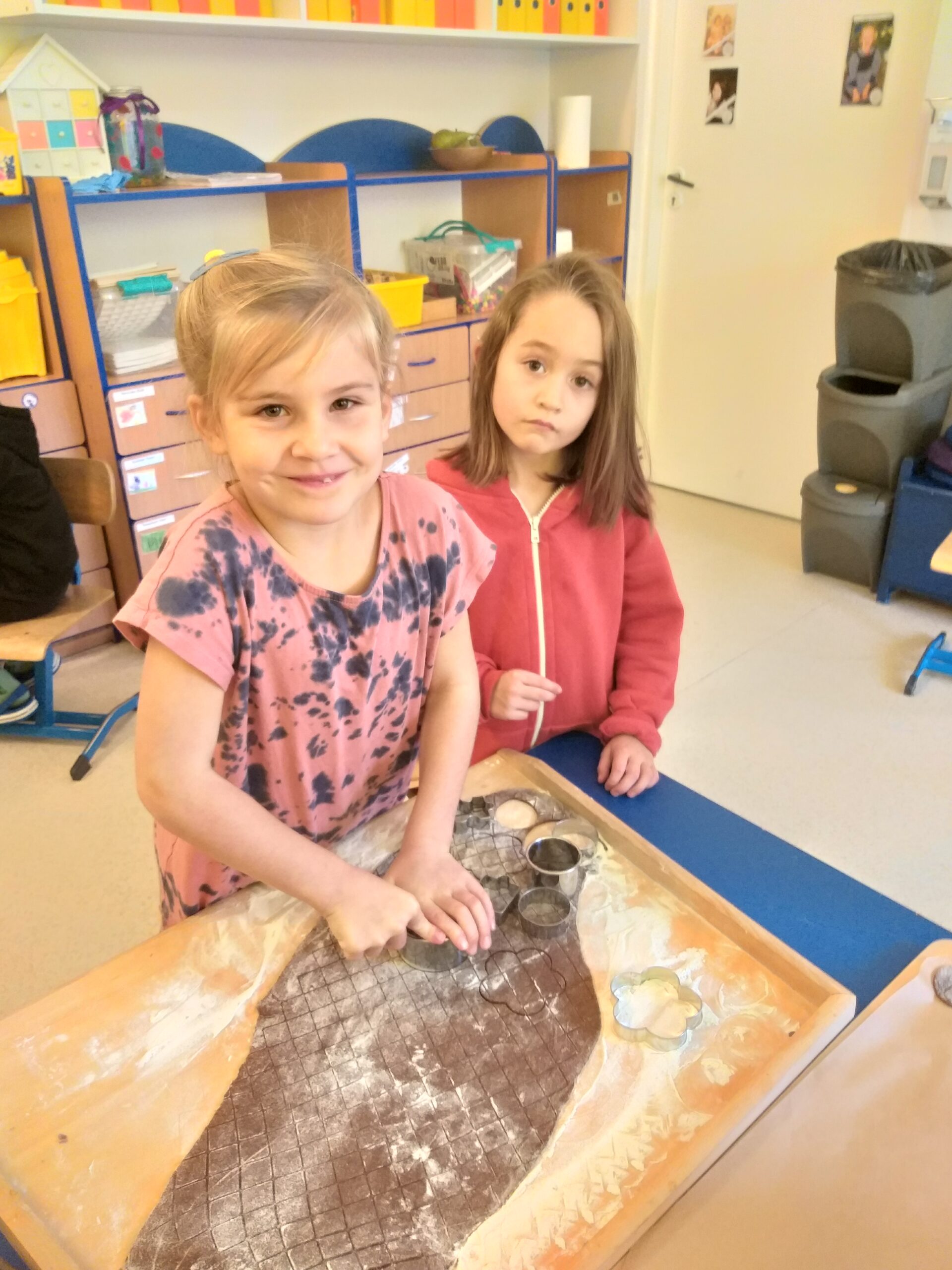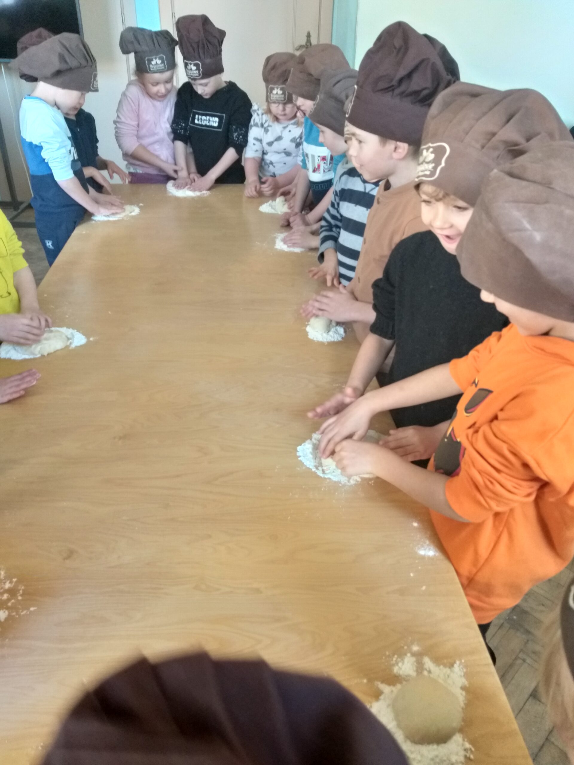 Podczas poznawania legendy o Toruńskich piernikach, dzieci samodzielnie z przygotowanego ciasta wykrawały kształty pierników. Zajęcia rozwijały samodzielność, sprawność manualną i współpracę w grupie.