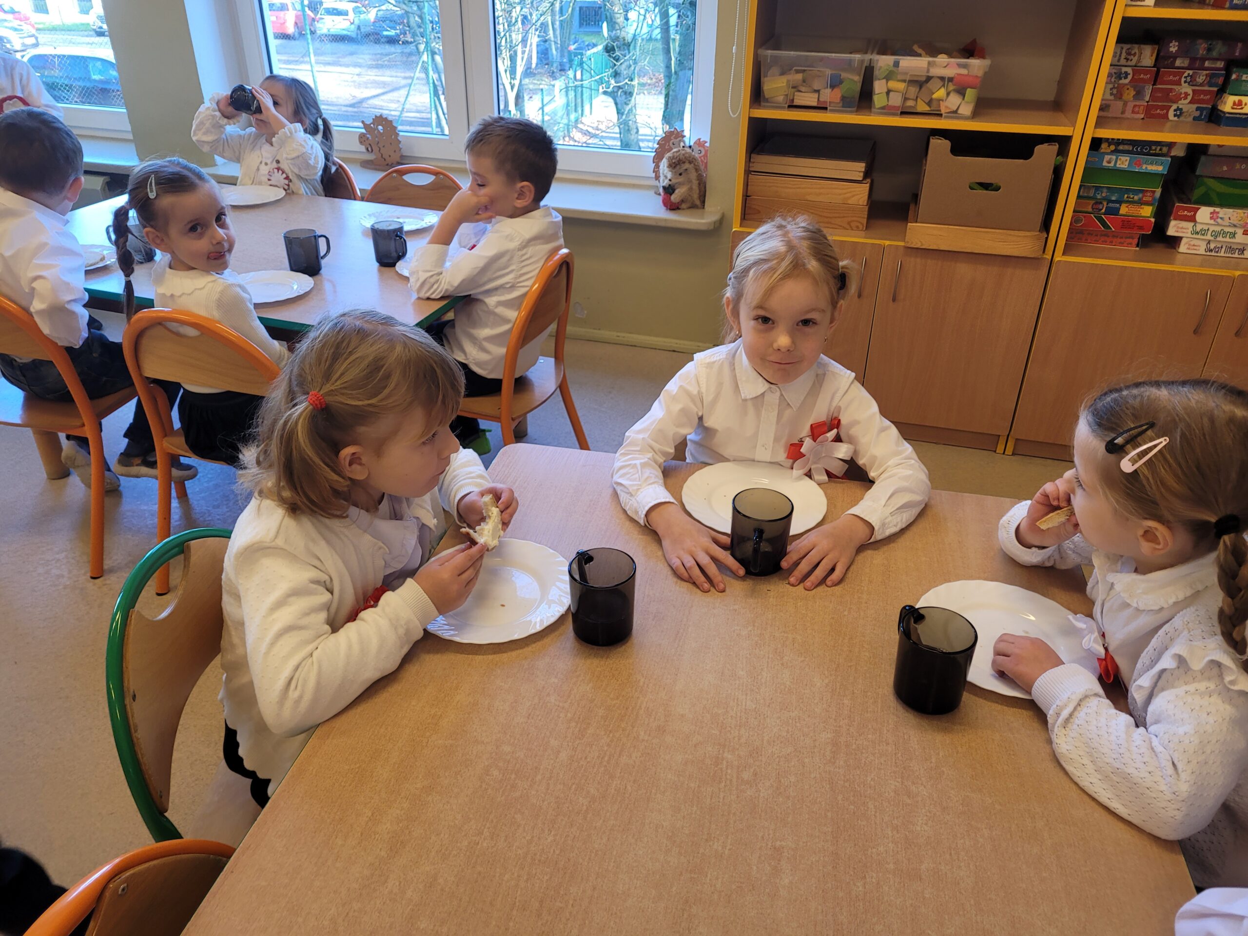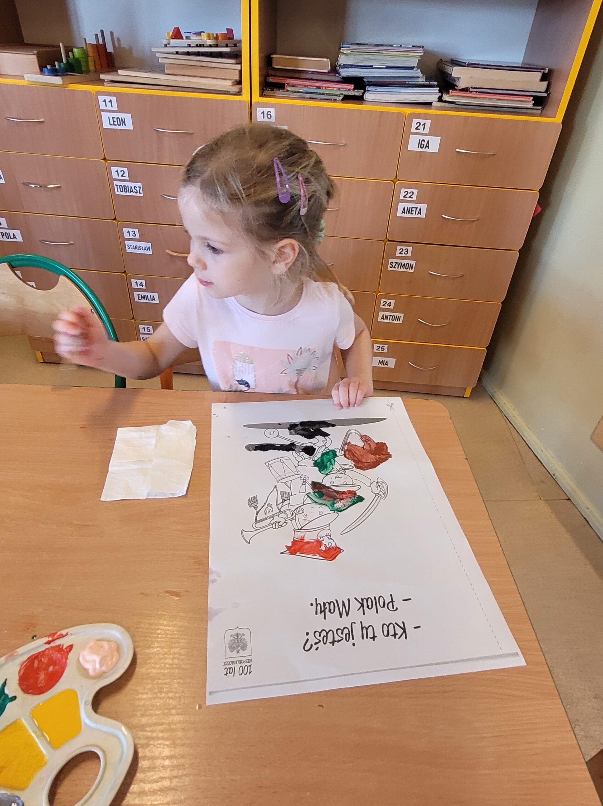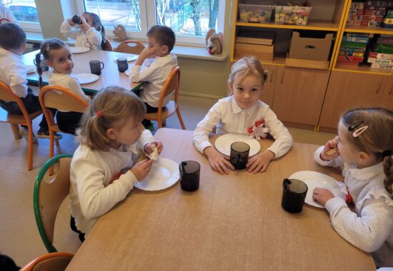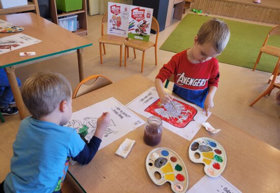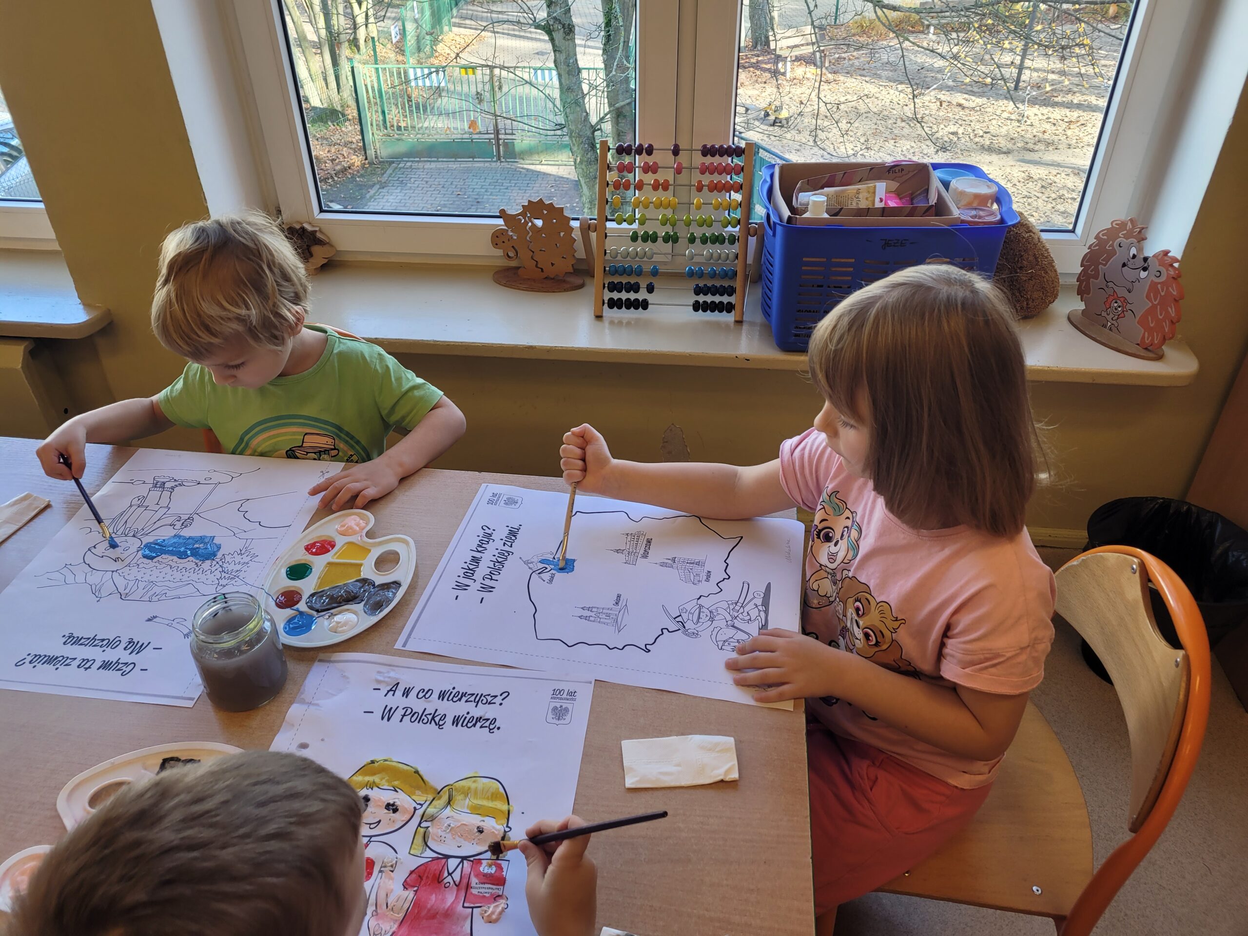 Przez ostanie dwa tygodnie dzieci utrwalały wiedzę dotyczącą symboli narodowych. Oglądały filmy dotyczące historii Polski oraz słuchały opowieści z nią związanych. Śpiewały piosenki związane z niepodległością i pięknem naszego kraju. Przedszkolaki wykonywały prace plastyczne związane z symbolami narodowymi oraz drogą do niepodległości naszej ojczyzny. W piątek, przed Narodowym Świętem Niepodległości odbył się w naszym przedszkolu uroczysty apel. Dzieci odśpiewały hymn państwowy, recytowały wiersz Władysława Bełzy „Katechizm polskiego dziecka” oraz śpiewały piosenki patriotyczne. W tym dniu zostały pasowane na przedszkolaka dzieci, które wcześniej nie mogły uczestniczyć w tym wydarzeniu. Na zakończenie uroczystości dzieci odśpiewały hymn przedszkola.