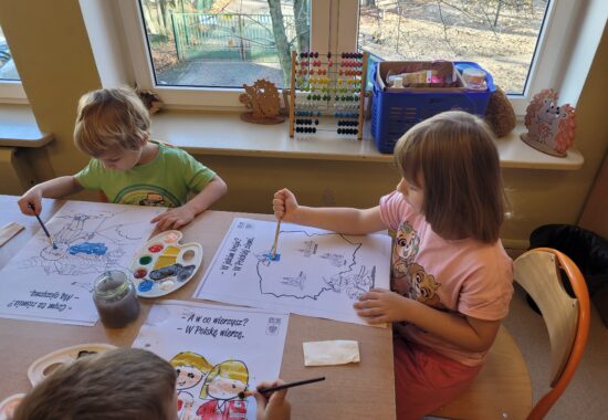 Każdego dnia dzieci ćwiczyły umiejętności samoobsługowe, używania odpowiednich zwrotów grzecznościowych w różnych sytuacjach, doskonaliły motorykę małą i dużą, uczyły się zgodnego funkcjonowania w grupie, rozwijały kompetencje językowe i matematyczne
