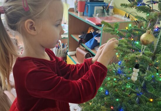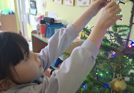 Wielkim wydarzeniem był występ świąteczny dla rodziców w formie przedstawienia, podczas którego dzieci z dumą zaprezentowały swoje umiejętności. Uczyliśmy się piosenek o Mikołaju, rozwijaliśmy kompetencje językowe, poznając nową literkę, oraz matematyczne – utrwalając cyferki.