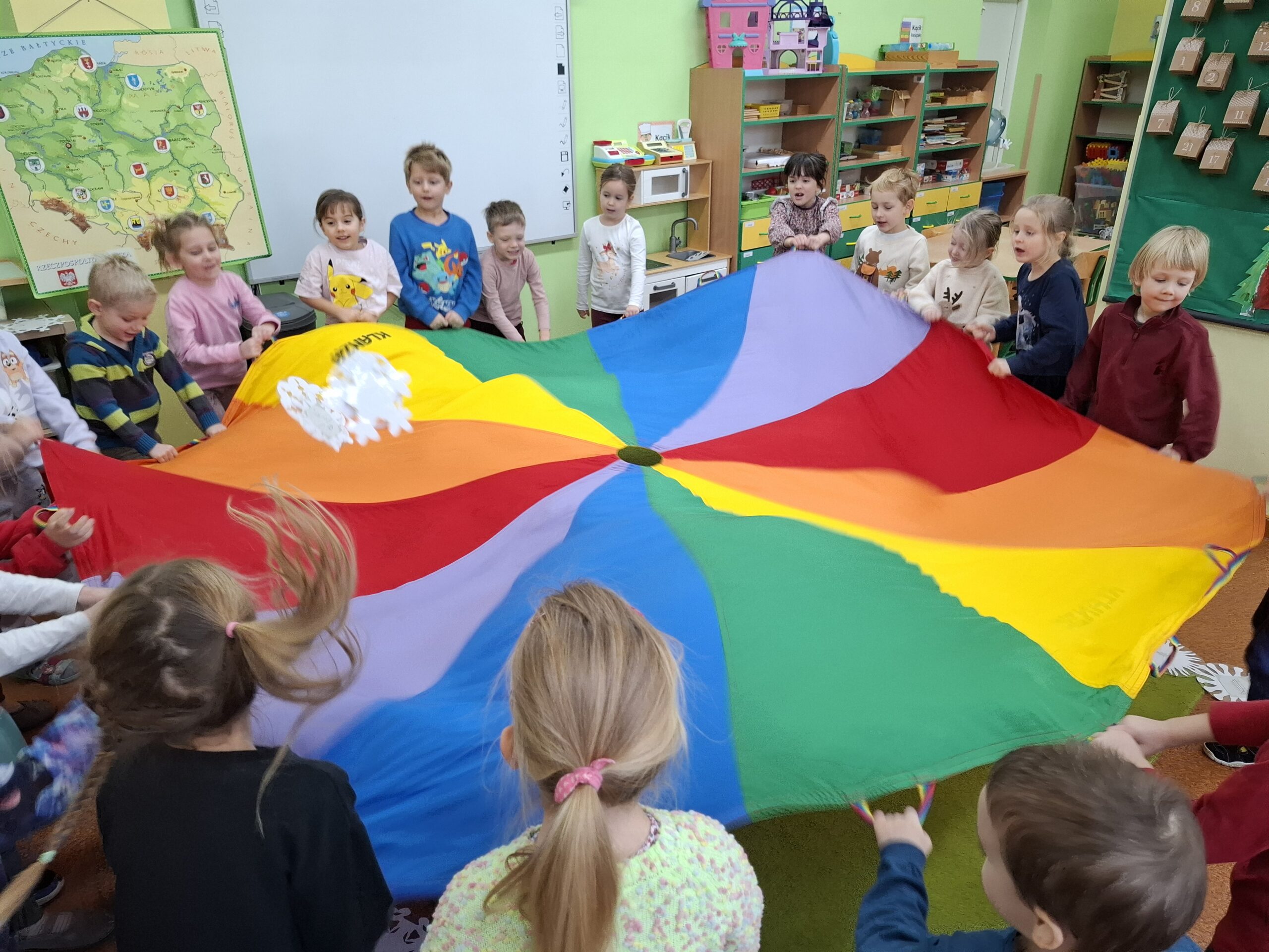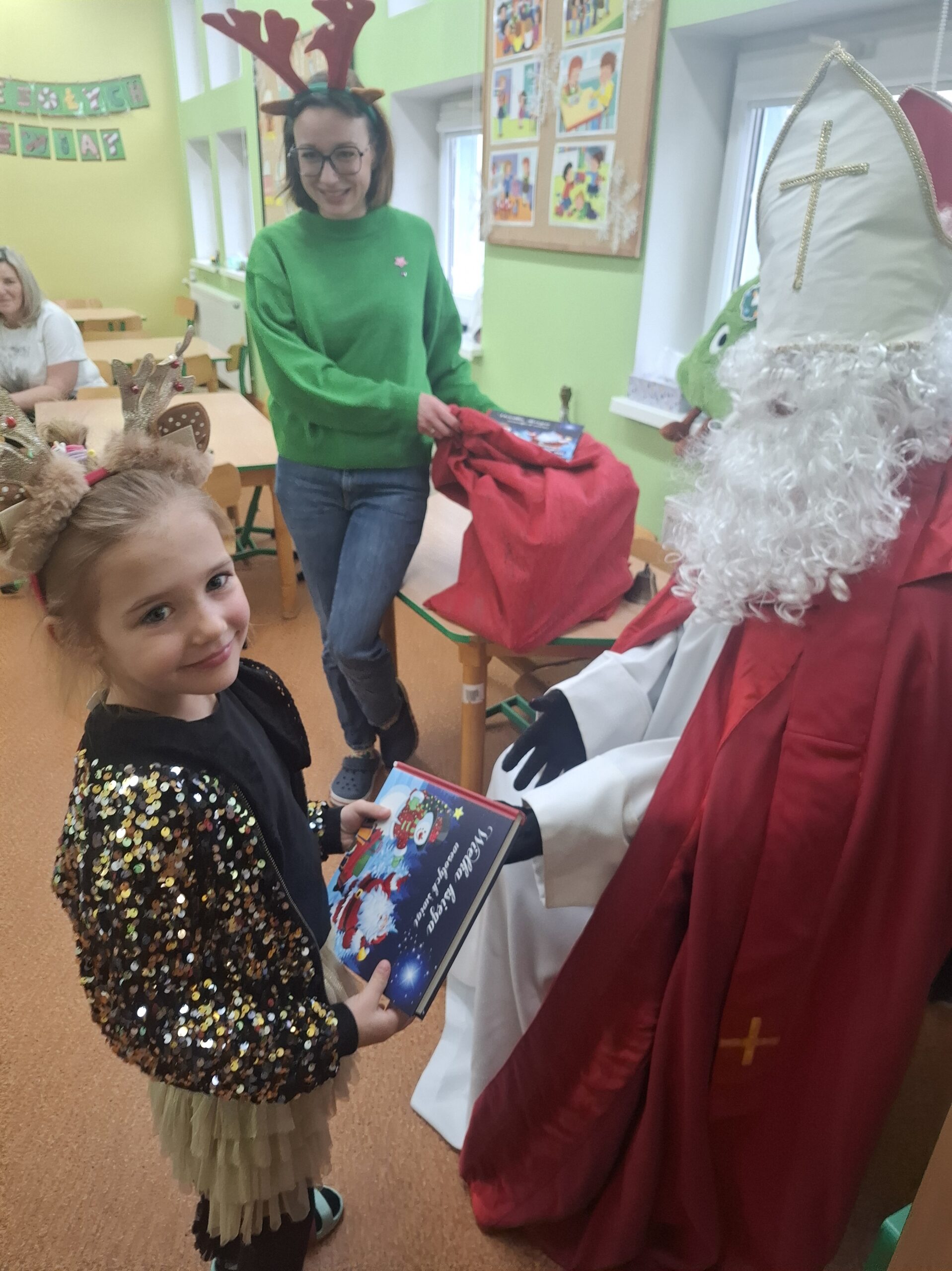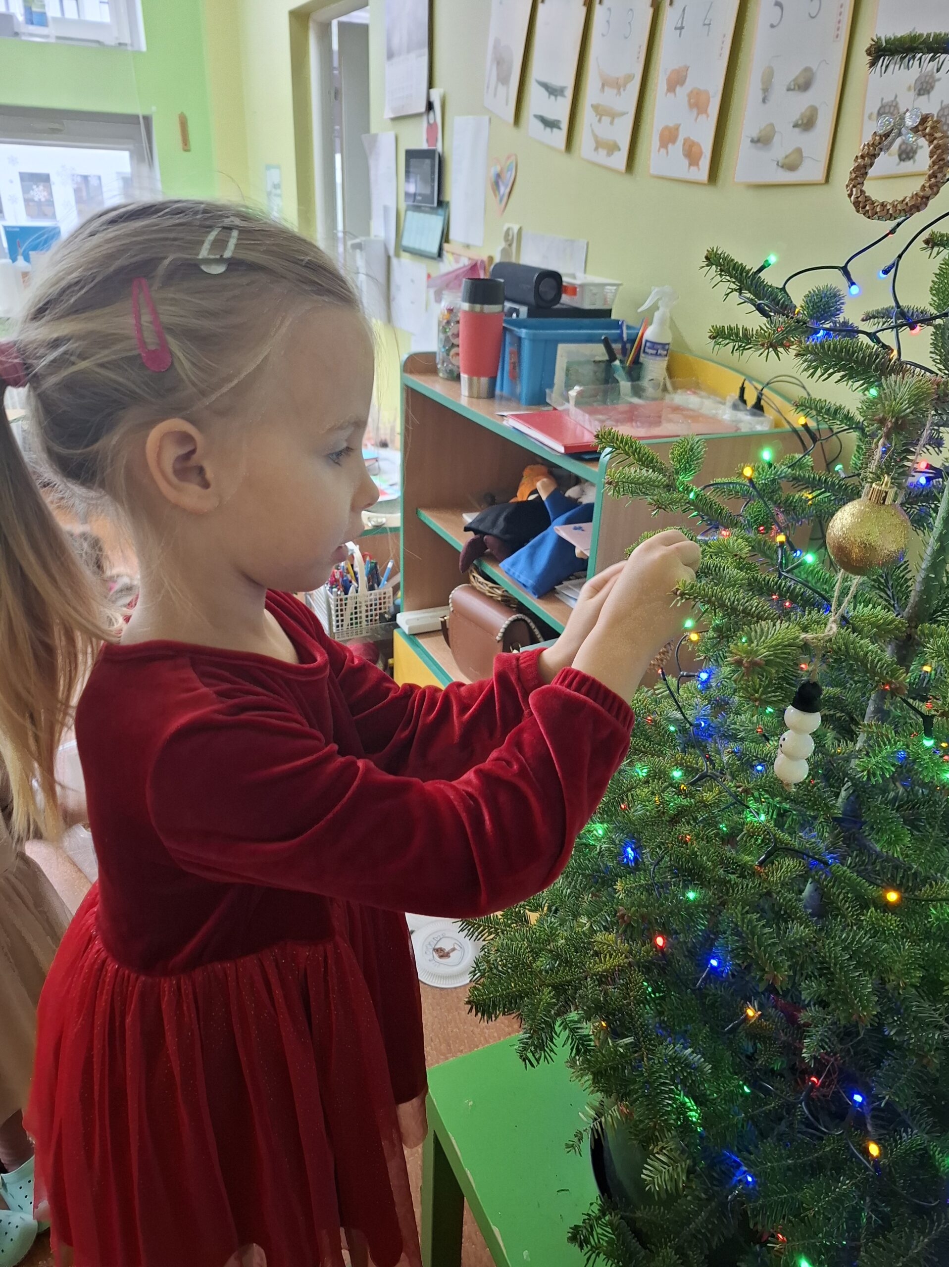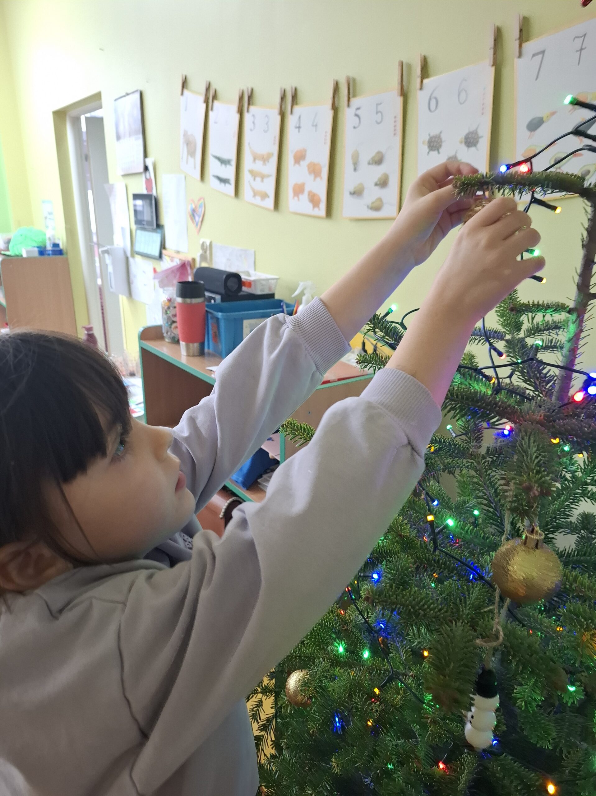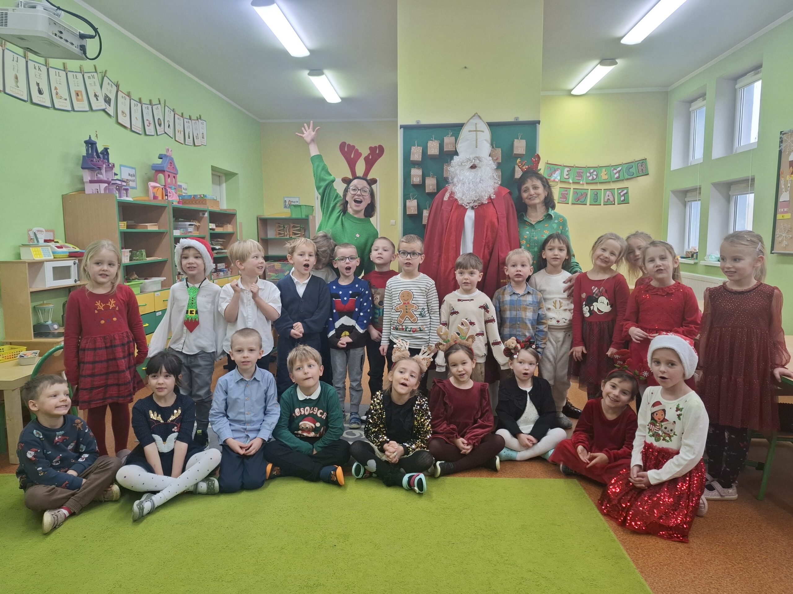 Wielkim wydarzeniem był występ świąteczny dla rodziców w formie przedstawienia, podczas którego dzieci z dumą zaprezentowały swoje umiejętności. Uczyliśmy się piosenek o Mikołaju, rozwijaliśmy kompetencje językowe, poznając nową literkę, oraz matematyczne – utrwalając cyferki.