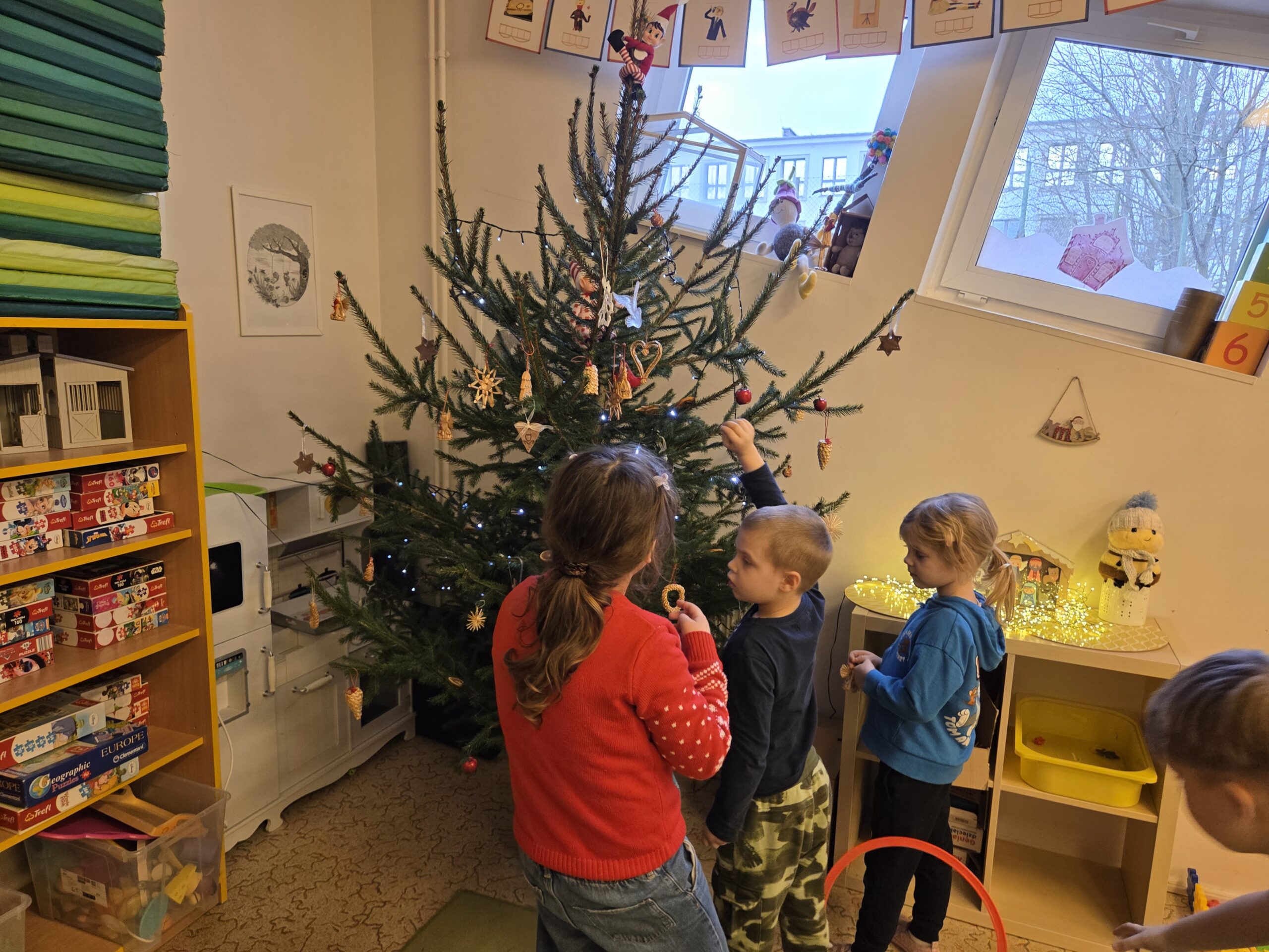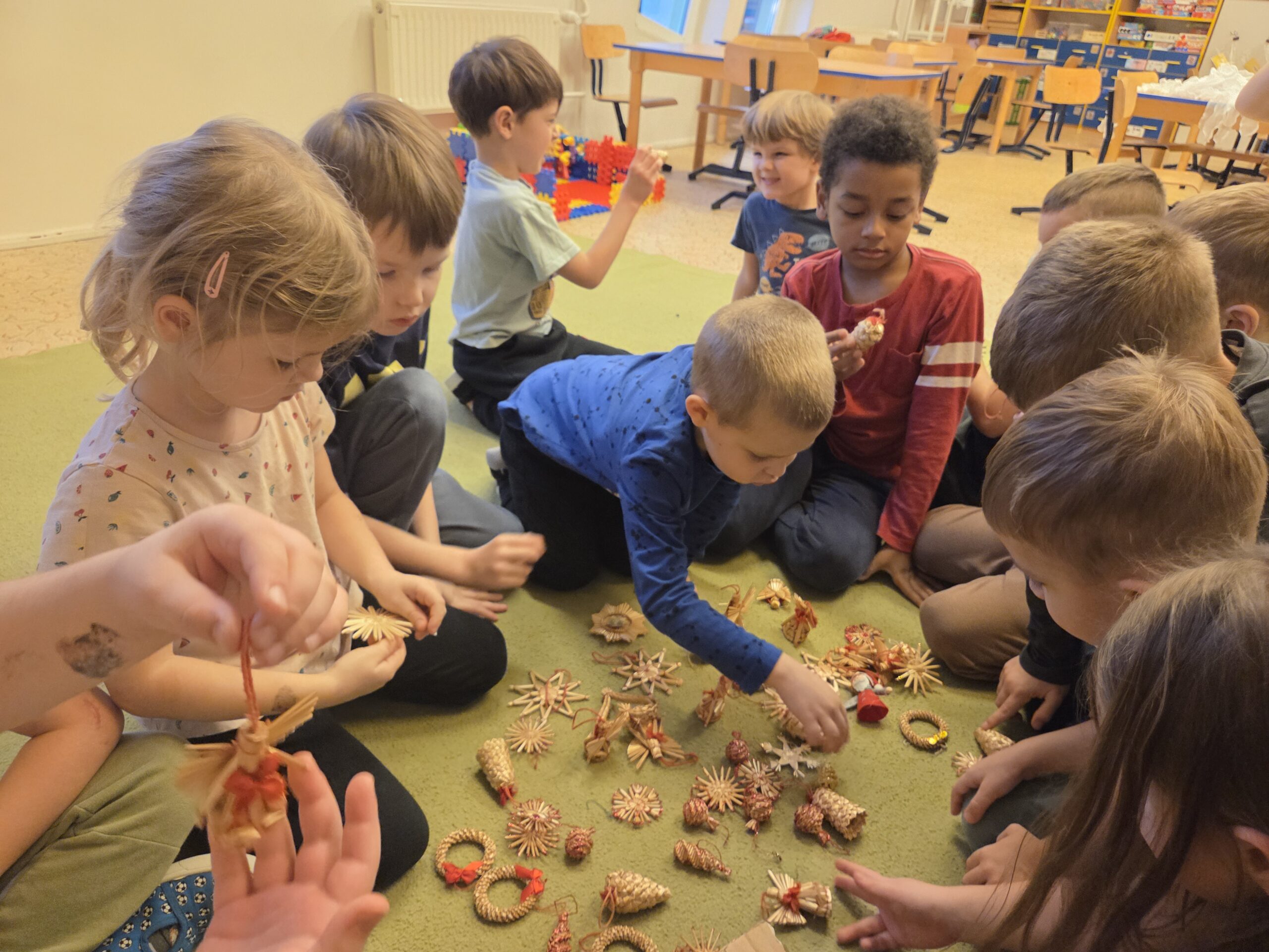 Poniedziałek rozpoczął się koncertem muzycznym pt ,, Grudniowo na ludowo” Pszczółki rozmawiały o tradycjach i zwyczajach związanych ze świętami Bożego Narodzenia np zwyczaj ozdabiania drzewka czyli choinki, znaczenie ozdób choinkowych, składanie życzeń z okazji świąt , wysyłanie kartek za pomocą poczty, kolędowanie itp.