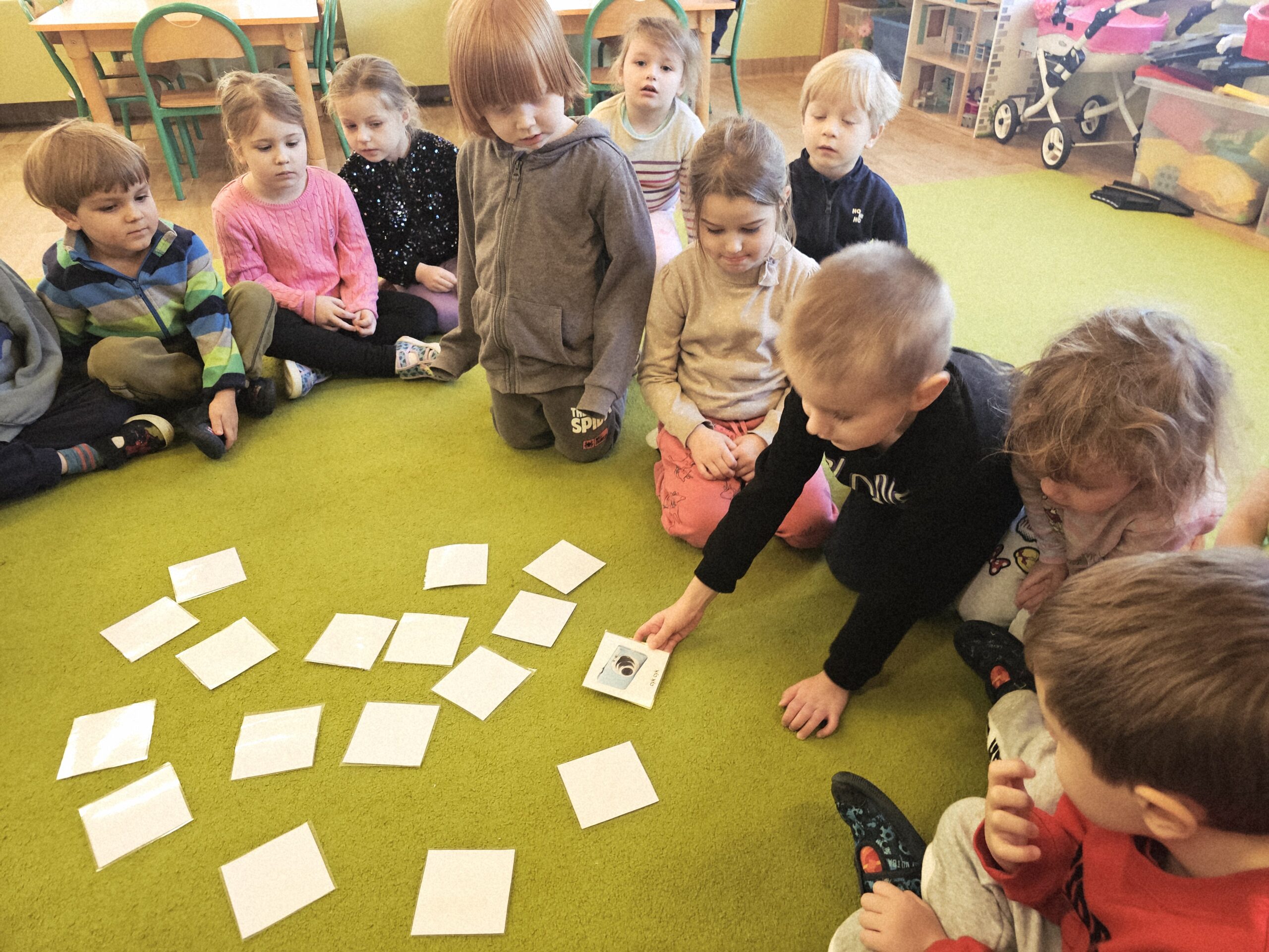 Były zabawy logopedyczne – nazywaliśmy przedmioty znajdujące się na obrazkach i