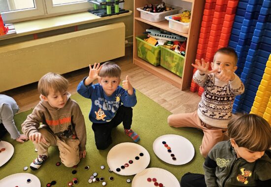 Podczas zabaw matematycznych doskonaliliśmy umiejętność liczenia w dostępnym zakresie i używaliśmy nazw liczebników porządkowych.