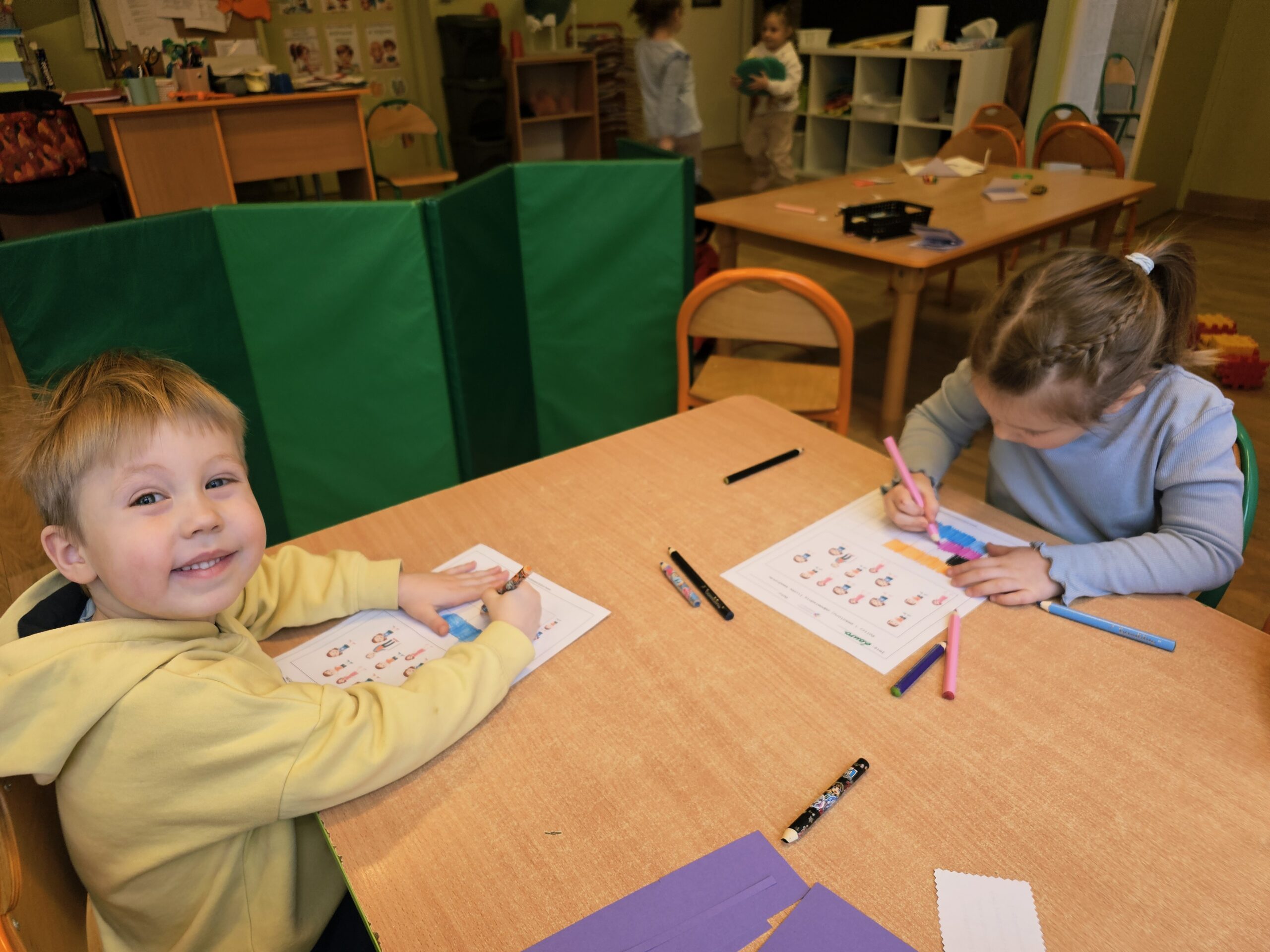 W trakcie zajęć rozwijaliśmy także kompetencje logicznego myślenia – dzieci kodowały na macie drogę Babci do Dziadka, ćwicząc orientację przestrzenną oraz współpracę w grupie. Nie zabrakło aktywności ruchowych – odbyły się zajęcia gimnastyczne oraz różnorodne zabawy ruchowe wspierające rozwój sprawności fizycznej.