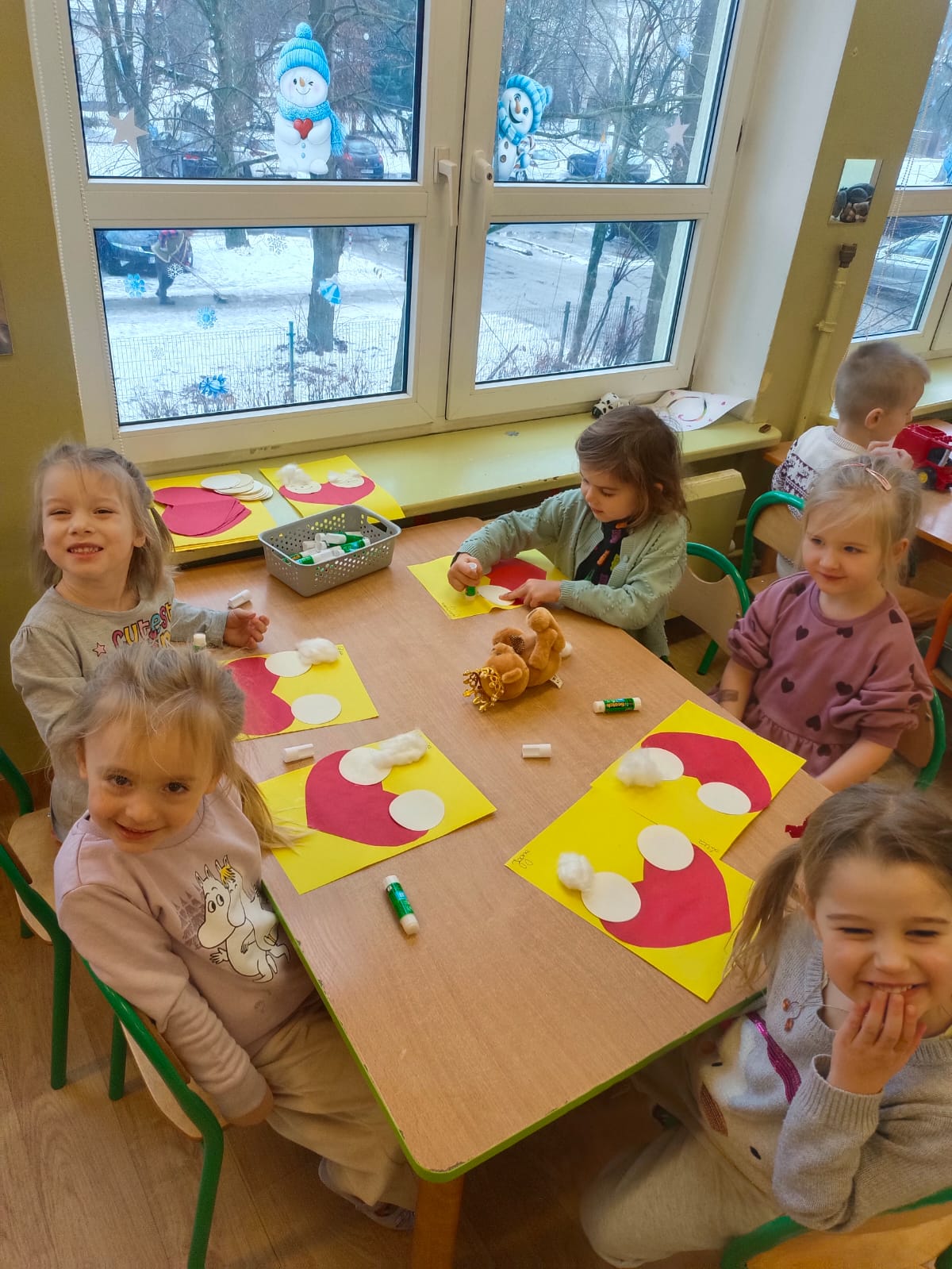 Dzieci wykonały również pracę plastyczną pt. „Serce dla Babci i Dziadka”, rozwijając zdolności manualne oraz kreatywność.