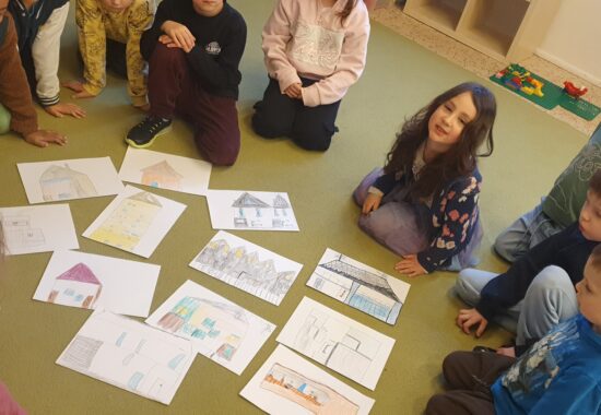 Drugi tydzień rozpoczął się od koncertu muzycznego Kulturka „Maria ,która dostała Nobla. „Rozpoczęliśmy projekt edukacyjny „Dom”. Poznaliśmy etapy budowy domu.Rozmawaliśmy o materiałach budowlanych i ich zastosowaniu.Nasza sala zamieniła się w plac budowy .Tworzyliśmy konstrukcje domów przy użyciu różnych form klocków .Poznaliśmy graficzny zapis litery „B,b” Powstały pracę plastyczne