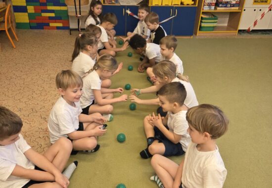 Na zajęciach WF-u ćwiczyliśmy w parach co było dobrą okazją do integracji i zaangażowania w zabawę całego ciała.