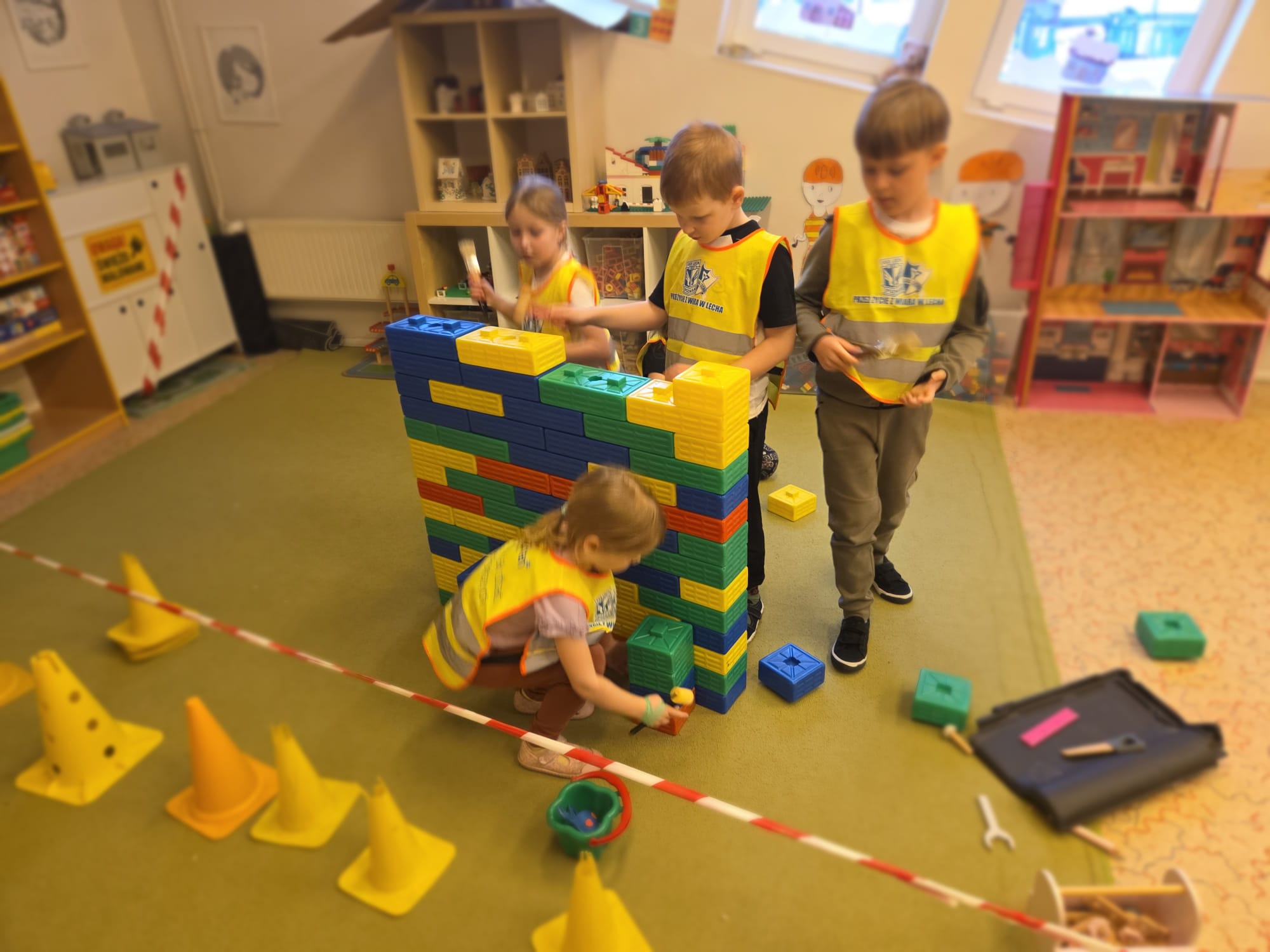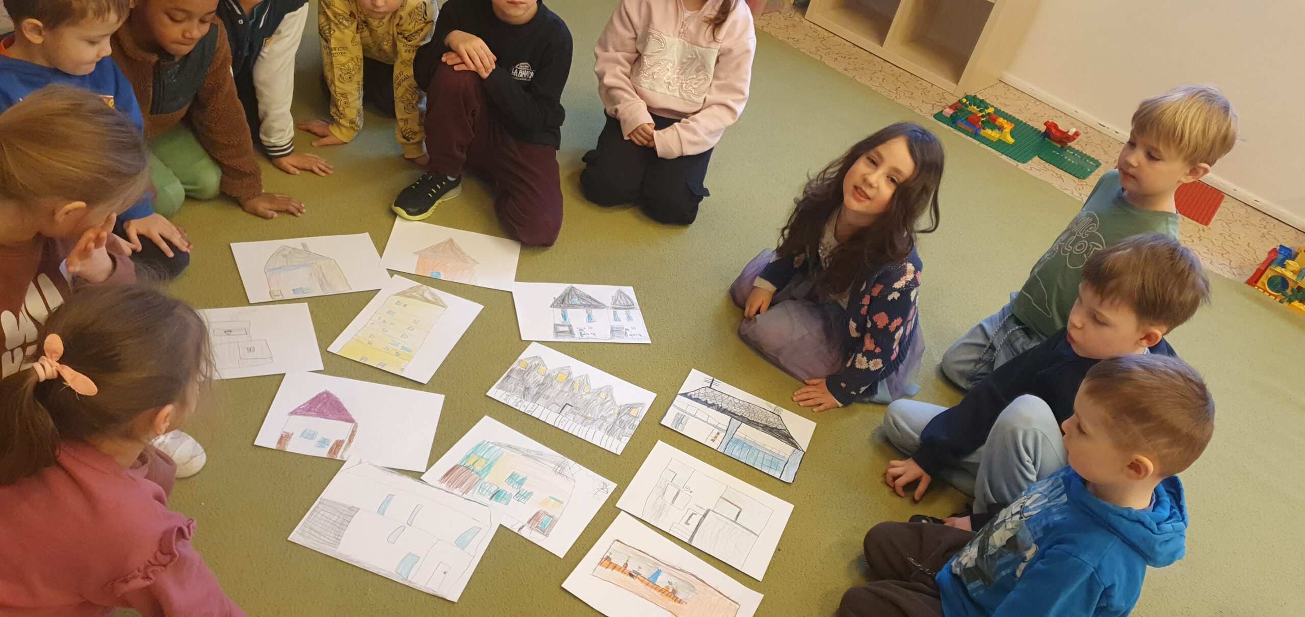 Drugi tydzień rozpoczął się od koncertu muzycznego Kulturka „Maria ,która dostała Nobla. „Rozpoczęliśmy projekt edukacyjny „Dom”. Poznaliśmy etapy budowy domu.Rozmawaliśmy o materiałach budowlanych i ich zastosowaniu.Nasza sala zamieniła się w plac budowy .Tworzyliśmy konstrukcje domów przy użyciu różnych form klocków .Poznaliśmy graficzny zapis litery „B,b” Powstały pracę plastyczne