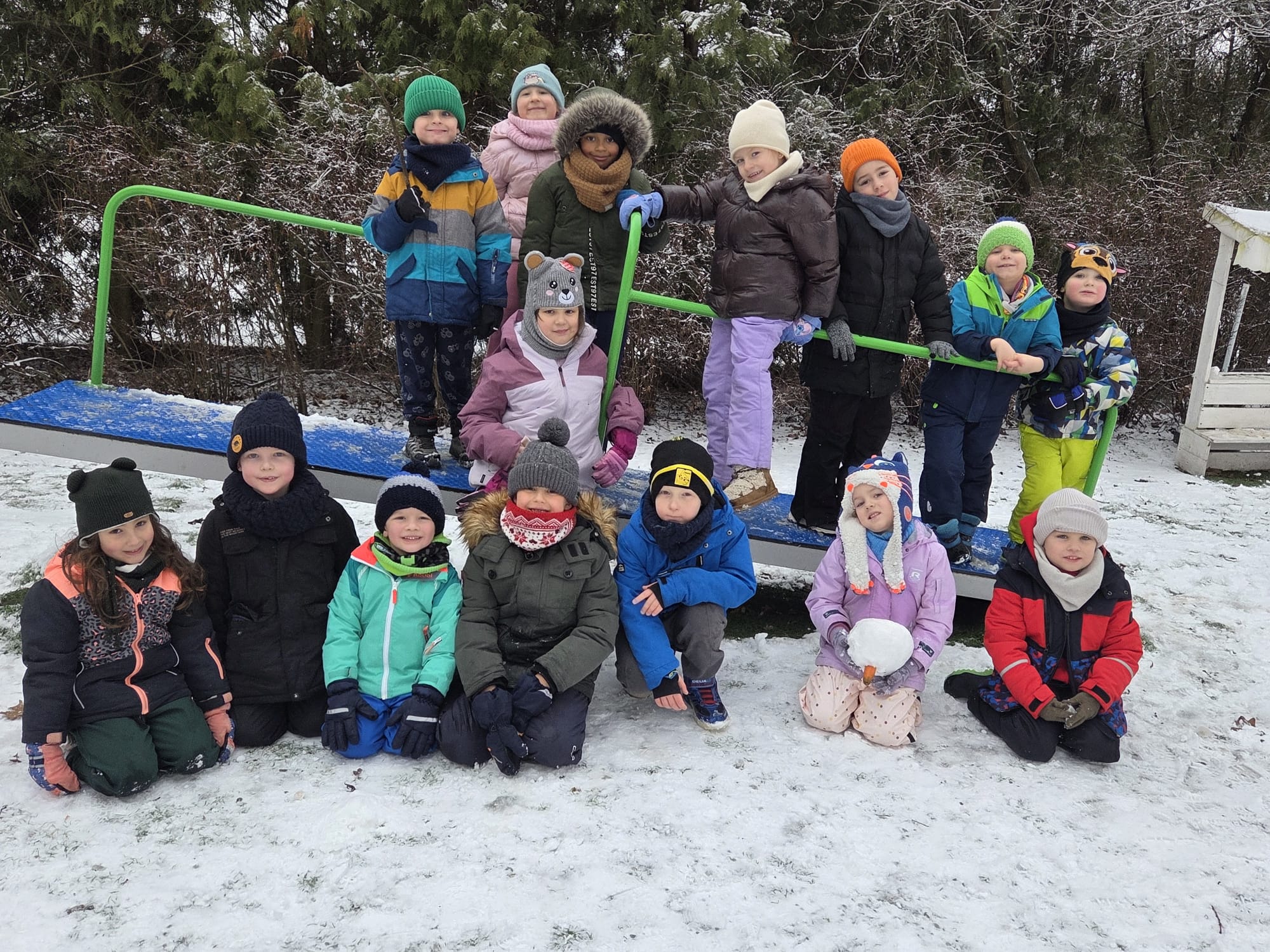 Kończyliśmy i pakowaliśmy upominki .W wolnych chwilach spędzaliśmy czas w ogrodzie przedszkolnym ciesząc się urokami zimy.Świętowaliśmy urodziny Henryka.W piątek nadszedł długo oczekiwany czas a do przedszkola przyszli nasi dziadkowie.Po skończonym występie obdarowaliśmy dziadków prezentami a w kawiarence czekało na wszystkich słodkie „co nie co”.