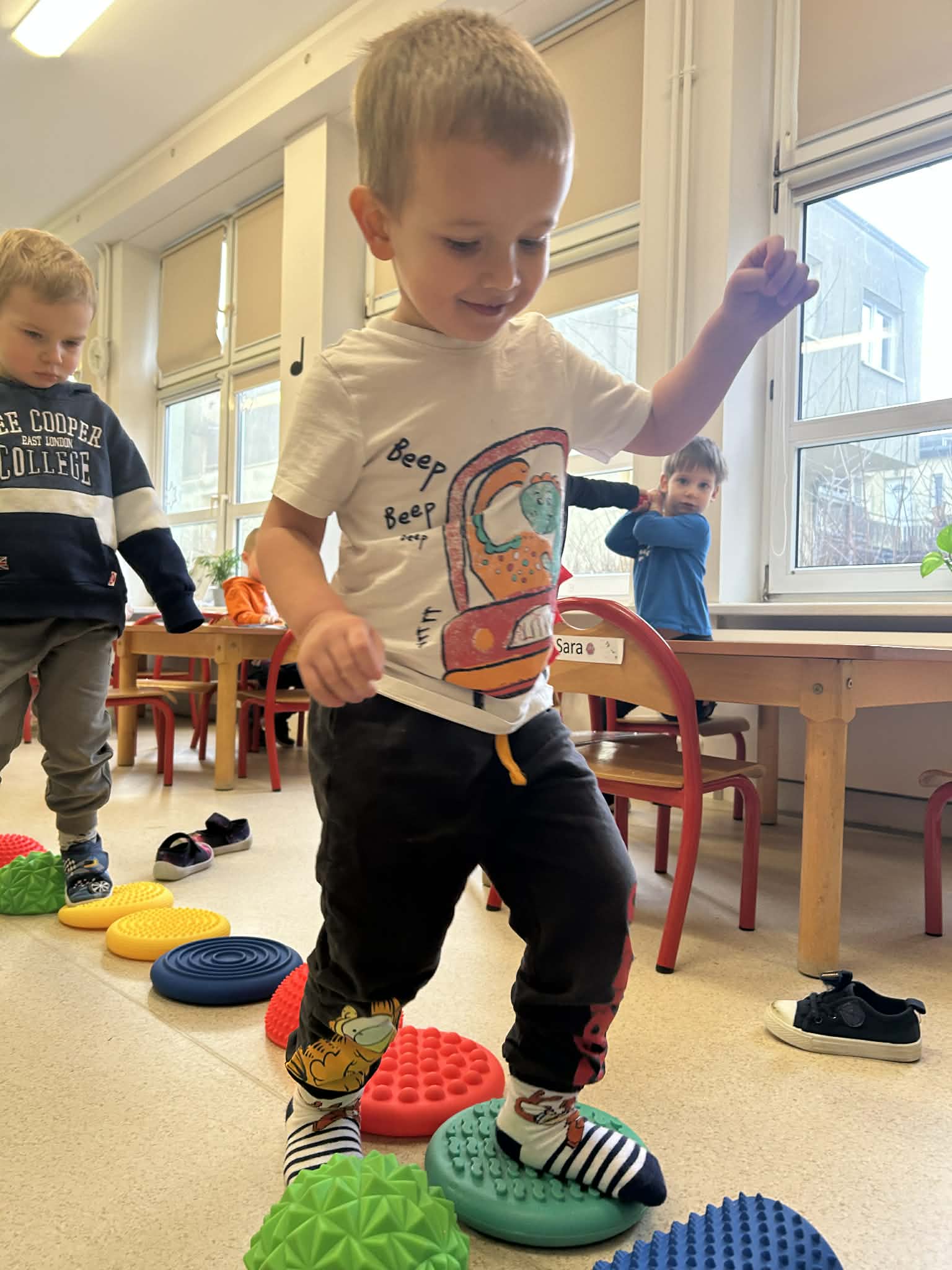 - rozwijały koncentrację oraz spostrzegawczość podczas zabaw z patyczkami na dywanie