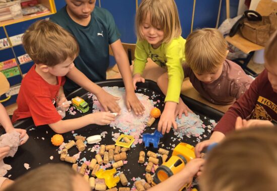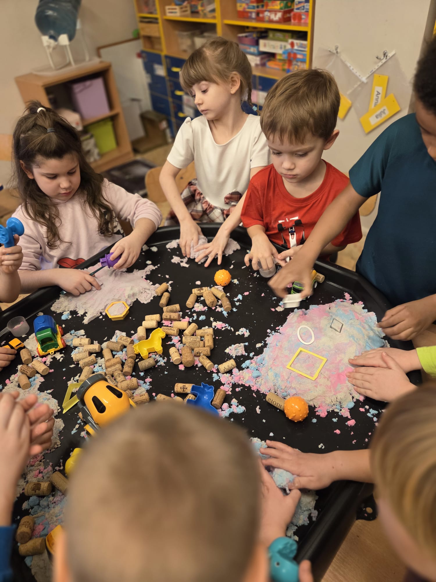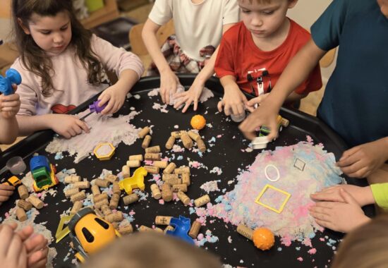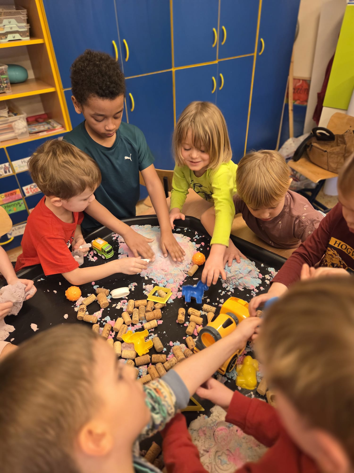 Do zabaw sensorycznych”budowa”wykorzystaliśmy tacę aktywności.