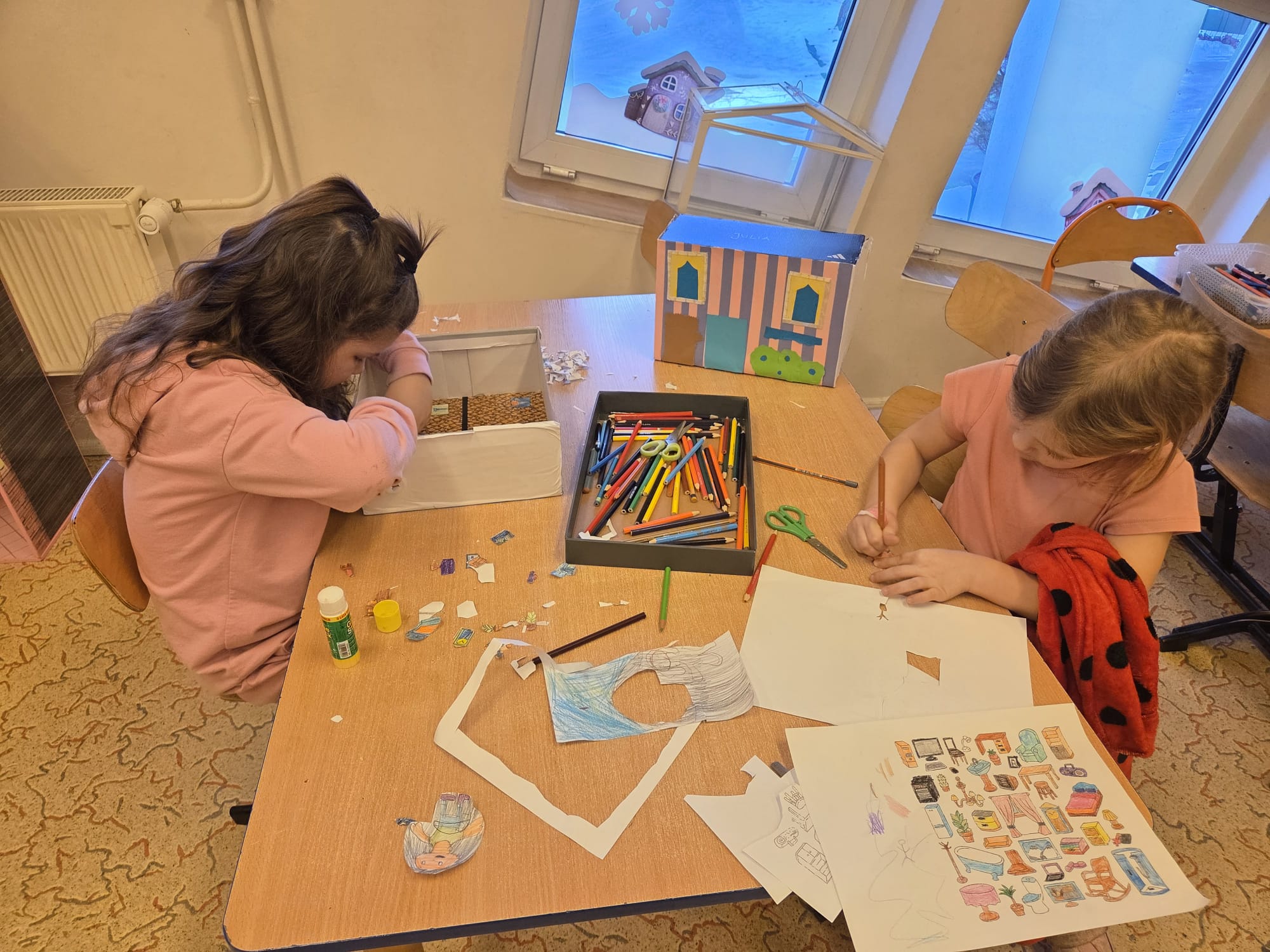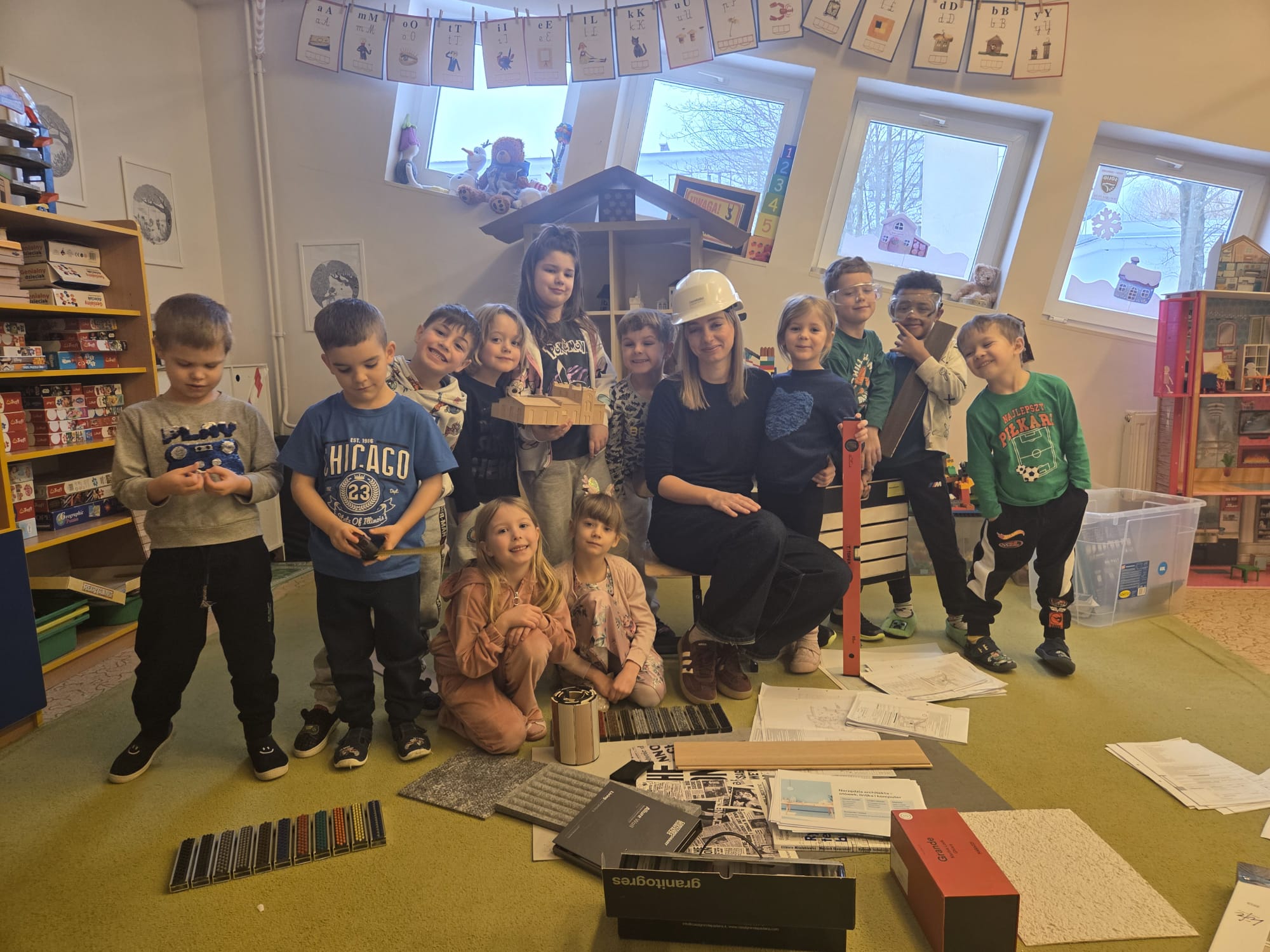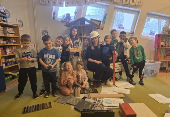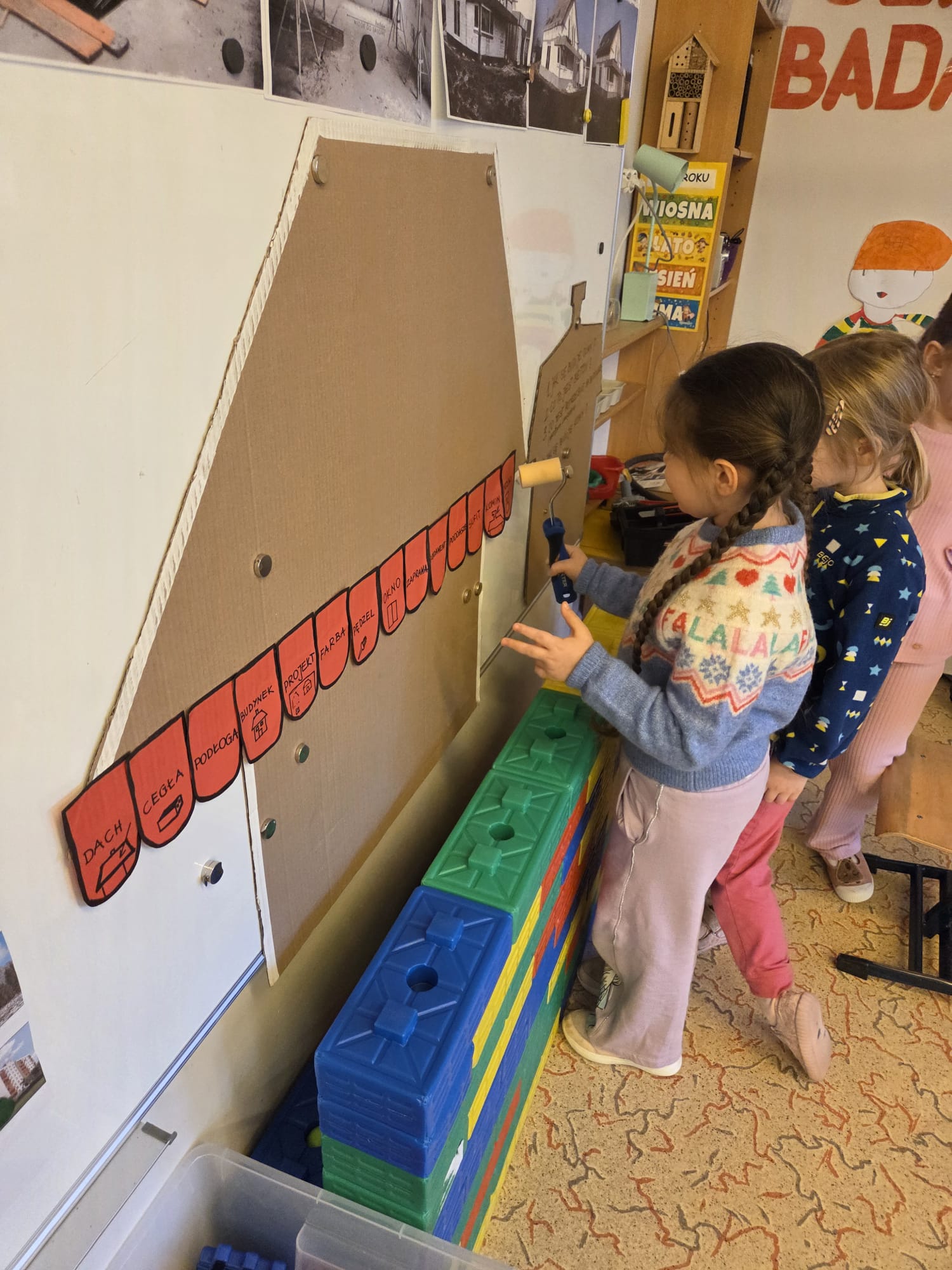 Kolejny tydzień  projektu Dom zrozpoczeliśmy budową naszych domów z których miała powstać ulica Petroneli.Każdy z nas zaprojektował swój dom i rozpoczął pracę nad jego realizacją .W pierwszym tygodniu odwiedziła nas mama Henryka :ekspert architekt budowlany.Dowiedziliśmy jakie są etapy budowy domu .Ekspert zaprezentował nam swoje rysunki projektów ,plany budowy oraz przyniósł sporo elementów budowlanych, które mogliśmy później wykorzystać w zabawie, następnie  zbudowaliśmy z nich  ścieżkę sensoryczną. Wzięliśmy udział w koncercie „Bajkowdzwięki”.Świętowaliśmy urodziny Miguela.Dowiedzieliśmy się co to jest prąd poznając sekrety elektroniki z zabawką pstryczek elektryczek .